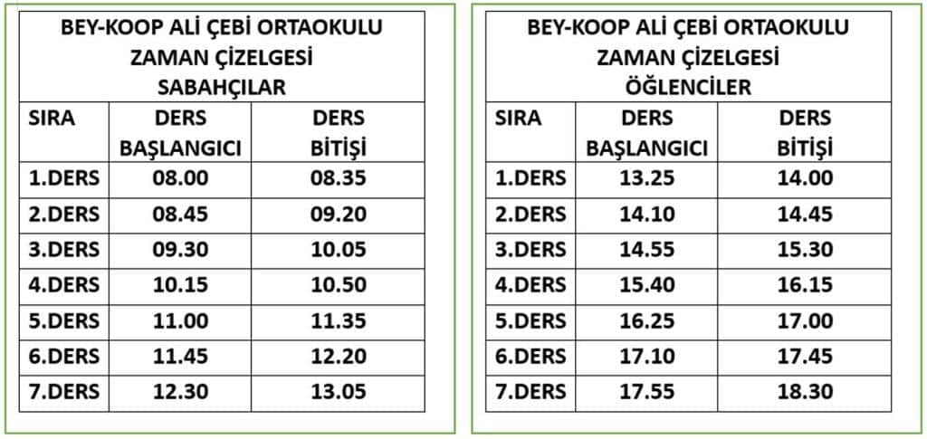 2025-2026 Eğitim Öğretim Yılı Okulumuzun Ders Giriş-Çıkış Saatleri. Yeni eğitim öğretim yılında tüm öğrencilerimize başarılar dileriz.